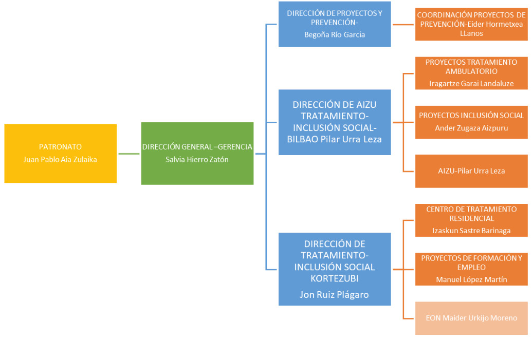 La estructura orgánica cuenta con una Dirección-Gerencia, tres Direcciones de centros operativos y seis coordinaciones de áreas de acción, siendo su órgano de Gobierno la Junta de Patronato.